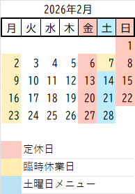2月の臨時休業予定日