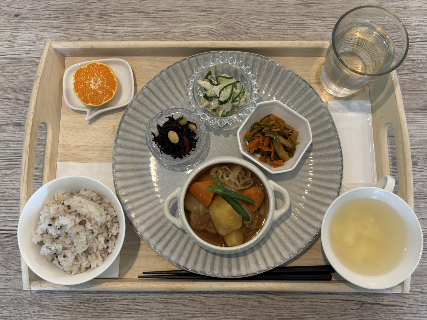 これまでのメニューメニュー 11月6日のランチメニュー これまでのメニュー 2025.11.06 とりじゃが ひじきと豆のサラダ 人参とピーマンの金平 きゅうりとごぼうのサラダ 玉子スープ ごはん(雑穀米) みかん テイクアウトの場合は下画像のようになります ぜひお越しください