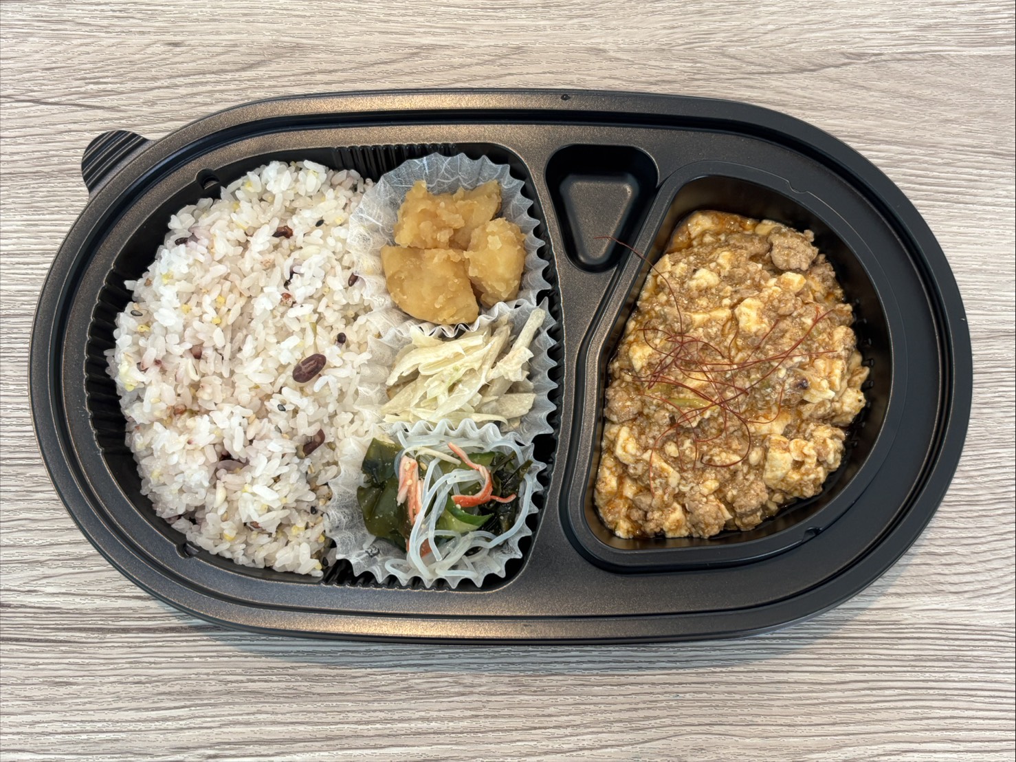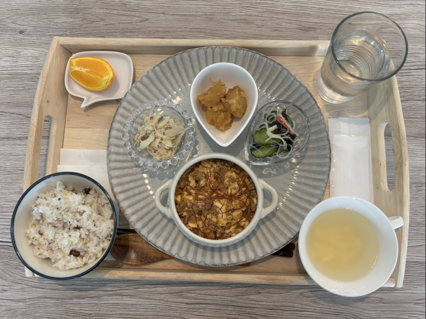 これまでのメニューメニュー 11月10日のランチメニュー これまでのメニュー 2025.11.102025.11.19 麻婆豆腐 春雨とカニカマときゅうりの酢のもの 炒めごぼうのツナサラダ じゃがいもの煮物 玉子スープ ごはん(雑穀米) オレンジ テイクアウトの場合は下画像のようになります ぜひお越しください