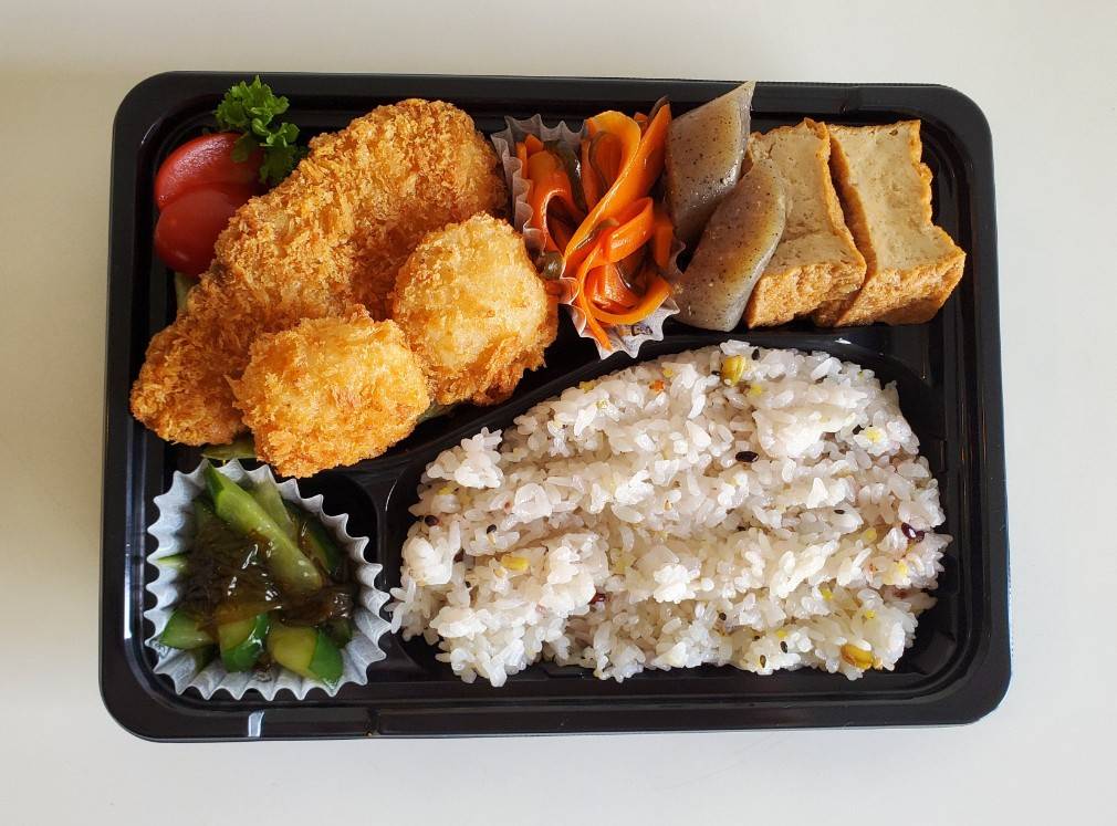 これまでのメニューメニュー 11月12日のランチメニュー これまでのメニュー 2025.11.122025.11.19 鮭と帆立フライ 人参の塩昆布ナムル 厚揚げと蒟蒻の土手煮風 胡瓜ともずくの酢の物 トマ玉スープ ごはん(雑穀米) みかん テイクアウトの場合は下画像のようになります ぜひお越しください