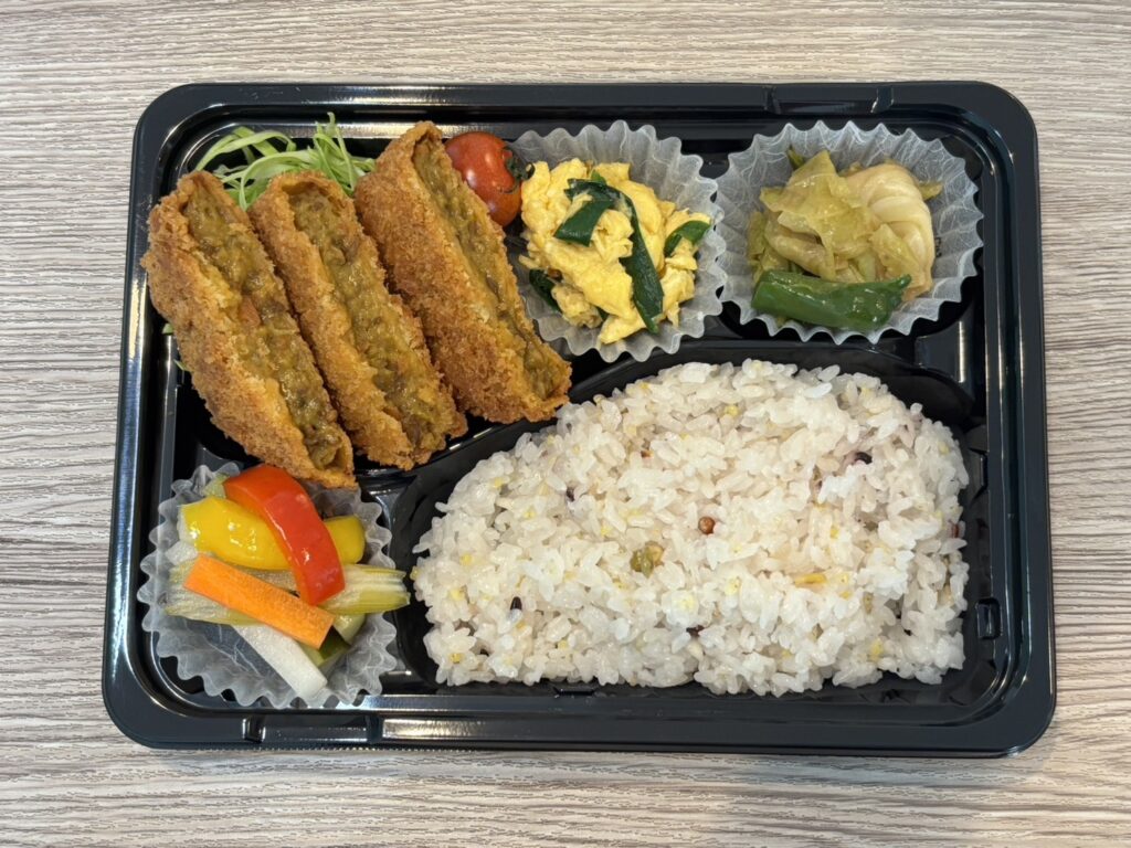 これまでのメニューメニュー 12月4日のランチメニュー これまでのメニュー 2025.12.04 キーマカレーフライ 野菜のピクルス キャベツとピーマンのみそ炒め ニラ玉 油あげとネギのおみそ汁 ごはん(雑穀米) みかん テイクアウトの場合は下画像のようになります ぜひお越しください
