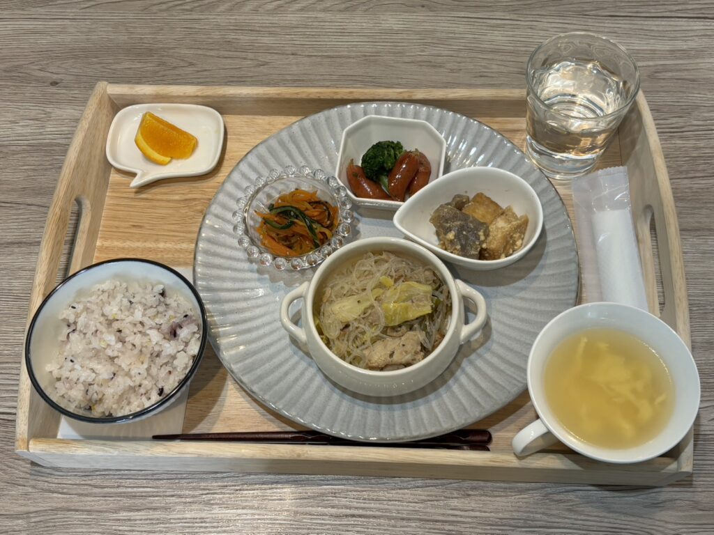 これまでのメニューメニュー 3月10日のランチメニュー これまでのメニュー 2026.03.10 豚バラとキャベツの春雨炒め 蒟蒻と厚揚げの土手煮風 人参の塩昆布ナムル ウインナーとブロッコリーの炒め物 玉子スープ ごはん(雑穀米) オレンジ テイクアウトの場合は下画像のようになります ぜひお越しください