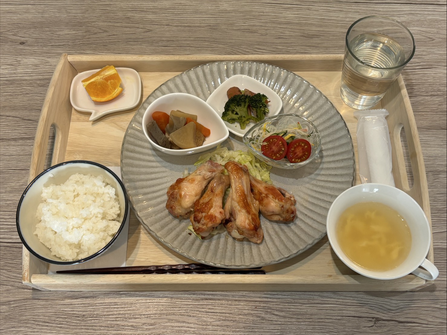 これまでのメニューメニュー 3月17日のランチメニュー これまでのメニュー 2026.03.17 鶏手羽元のオーブン焼き 春雨サラダ 厚揚げと根菜の煮物 ウィンナーとブロッコリーの炒め物 玉子スープ ごはん(白米) オレンジ テイクアウトの場合は下画像のようになります ぜひお越しください