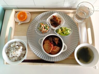 春巻き さつま芋のレモン煮 ほうれん草と人参の胡麻和え 白菜とベーコンのニンニク炒め 茄子のみそ汁 ごはん(雑穀米) キウイフルーツ テイクアウトの場合は下画像のようになります ぜひお越しください