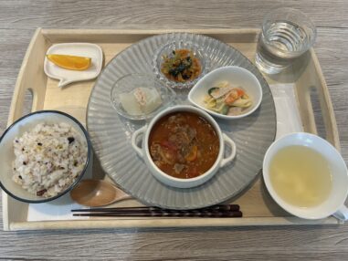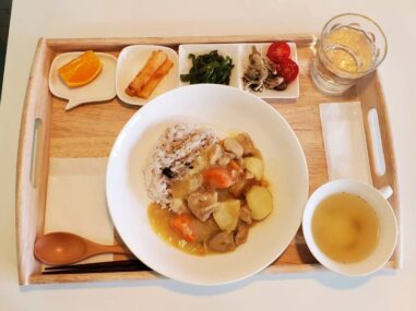 鱈と野菜のオーブン焼き 無限キャベツ サツマイモとクルミのデリ風サラダ キクラゲの玉子炒め ミルクスープ ごはん(雑穀米)オレンジ テイクアウトの場合は下画像のようになります ぜひお越しください